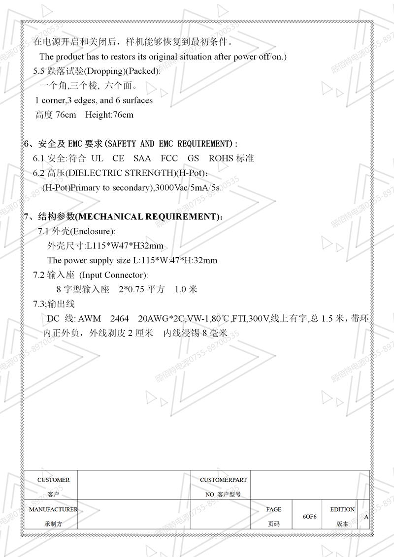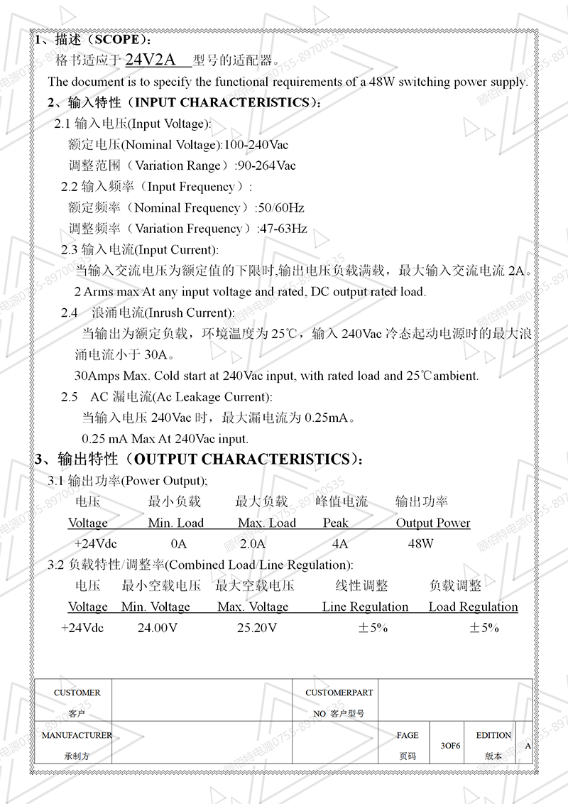 24V6A電源適配器帶PFC電路規格書(新模具)